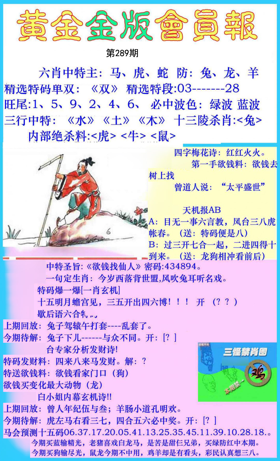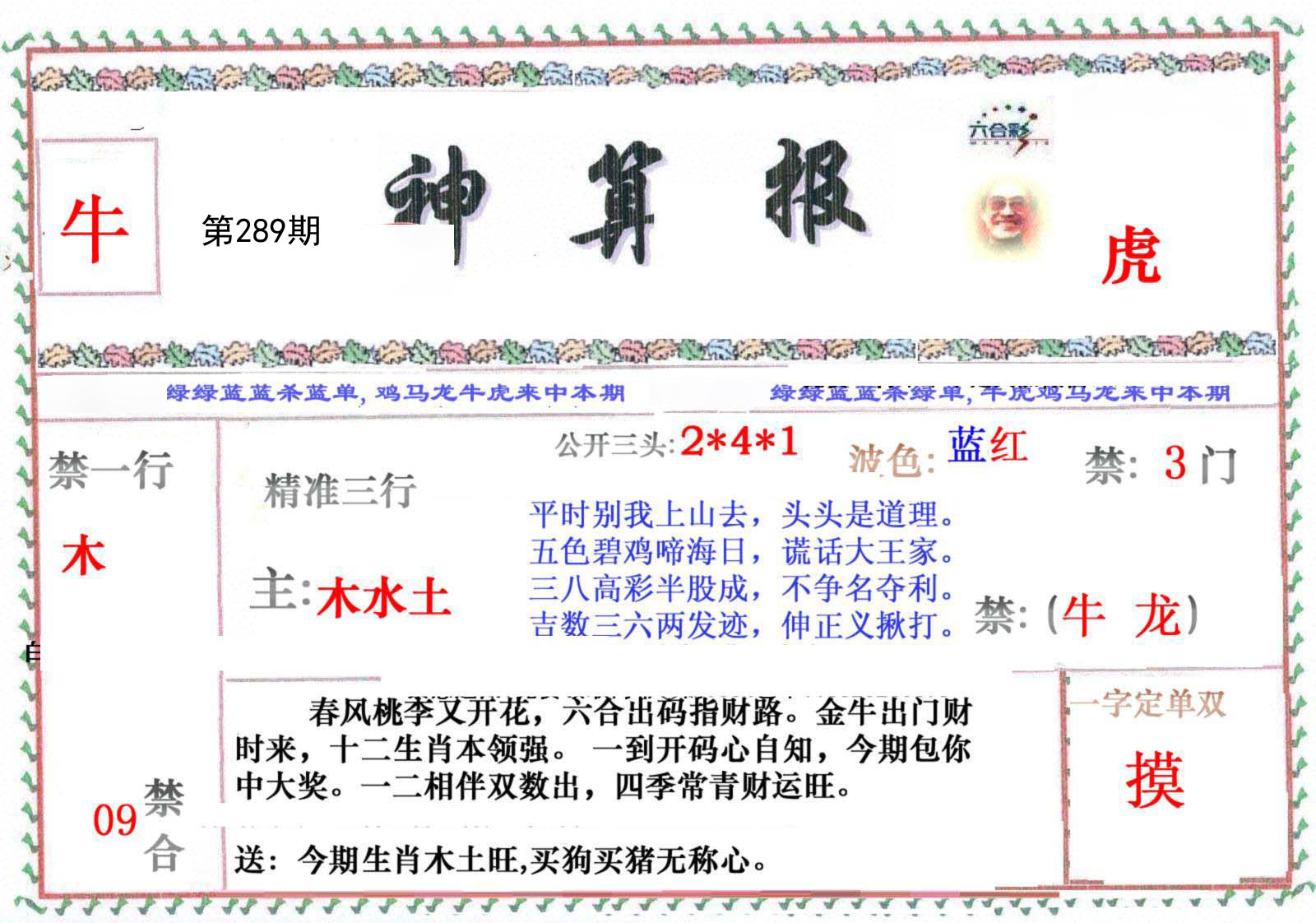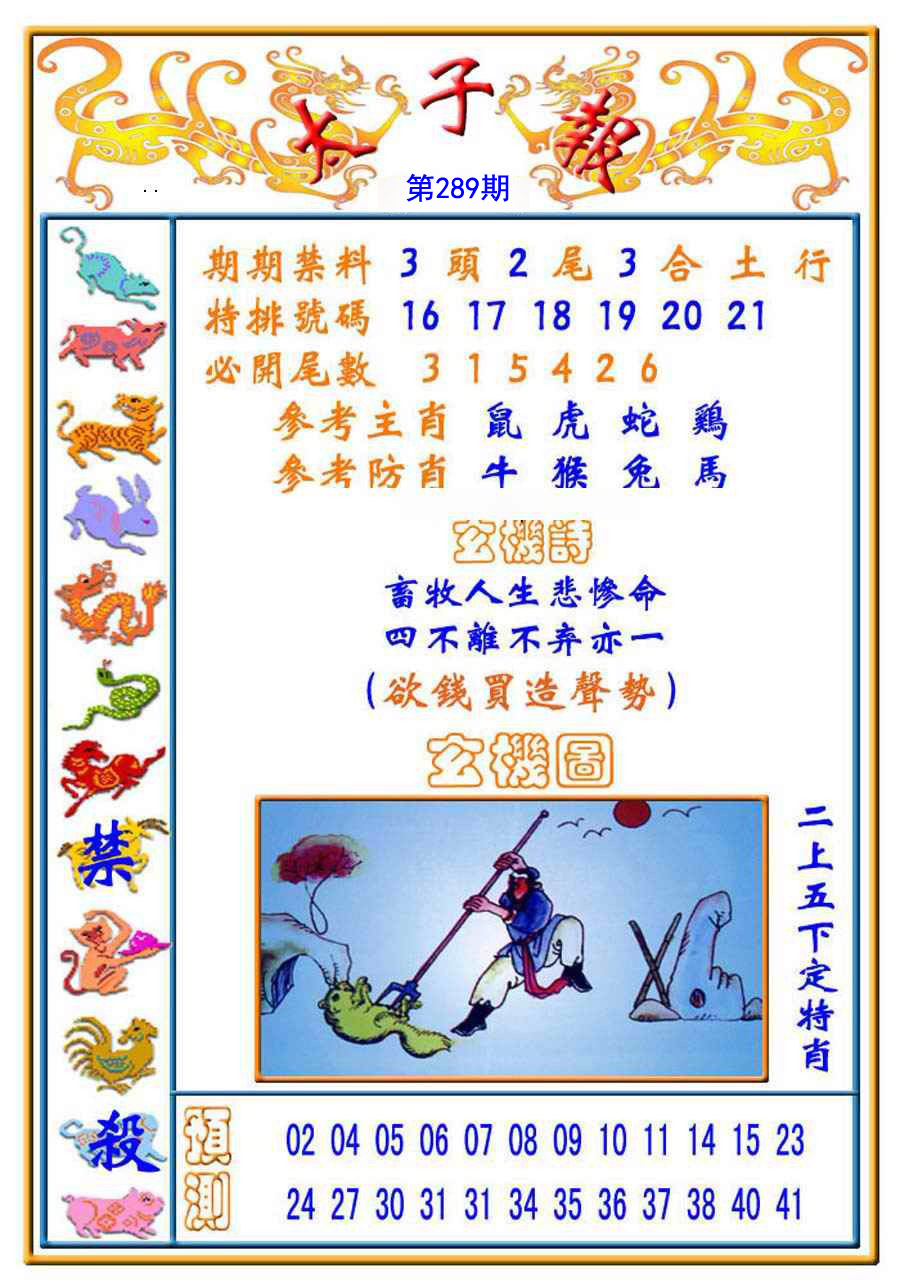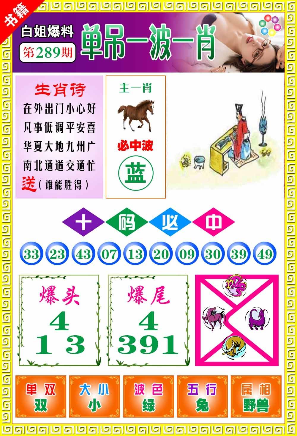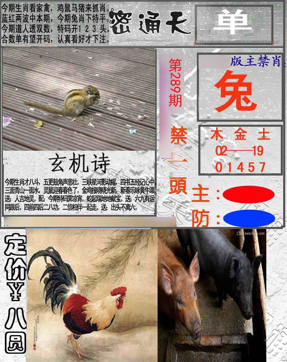 289期:必中五肖: 羊鼠猪马兔 |