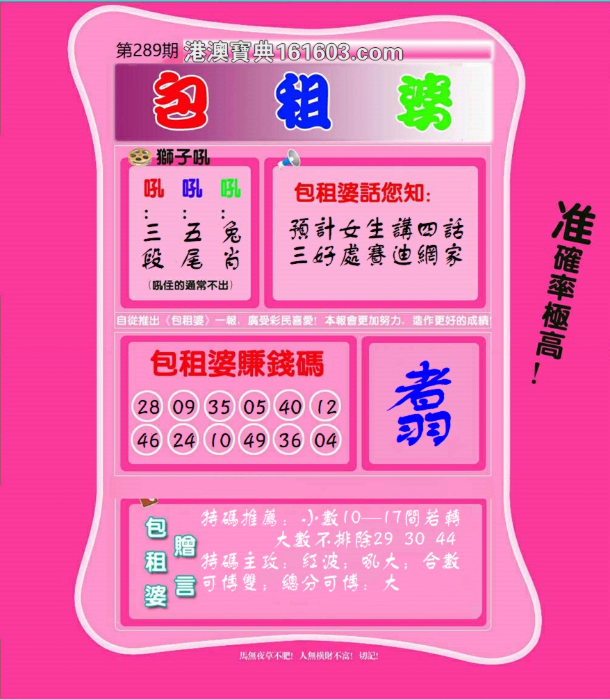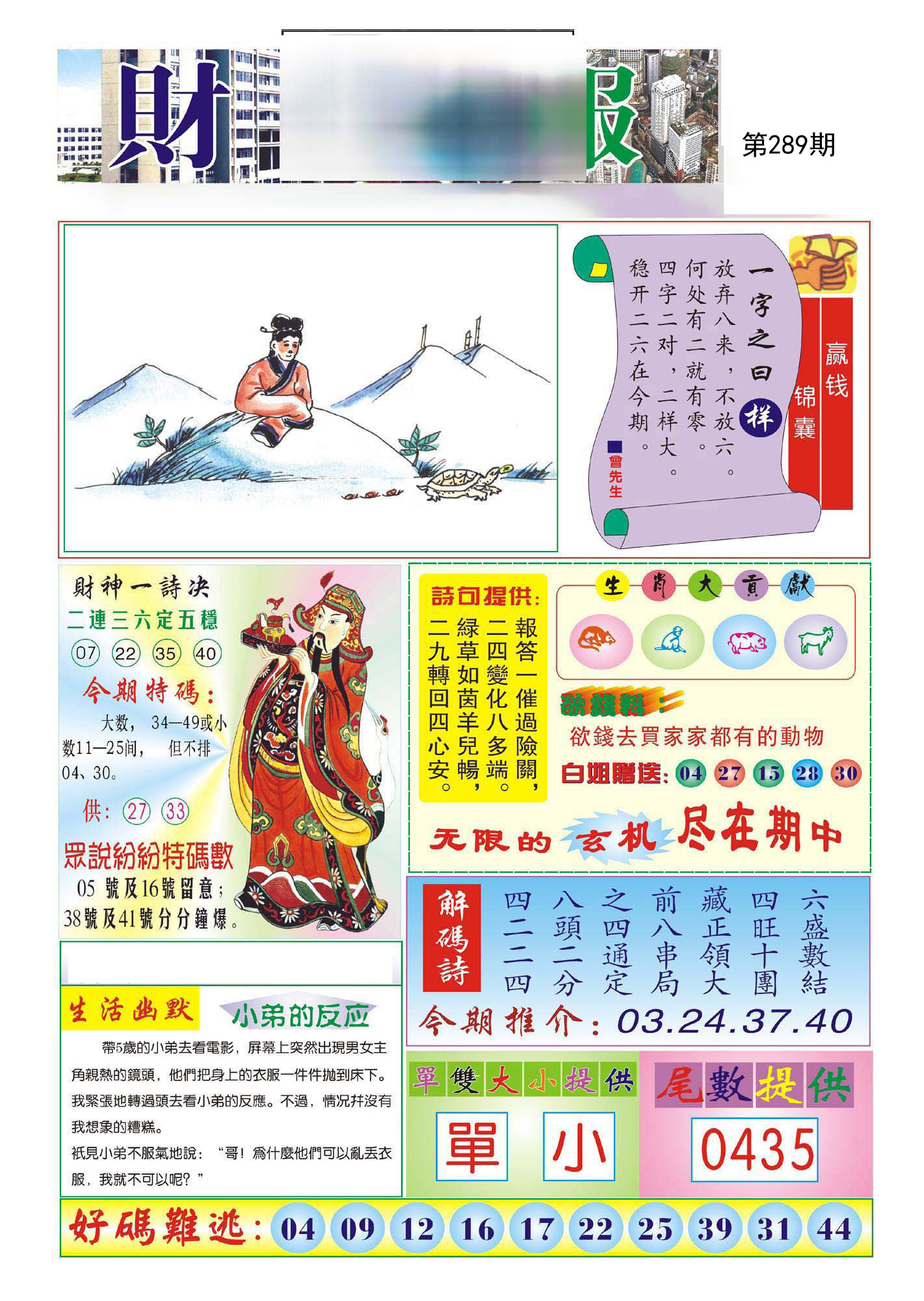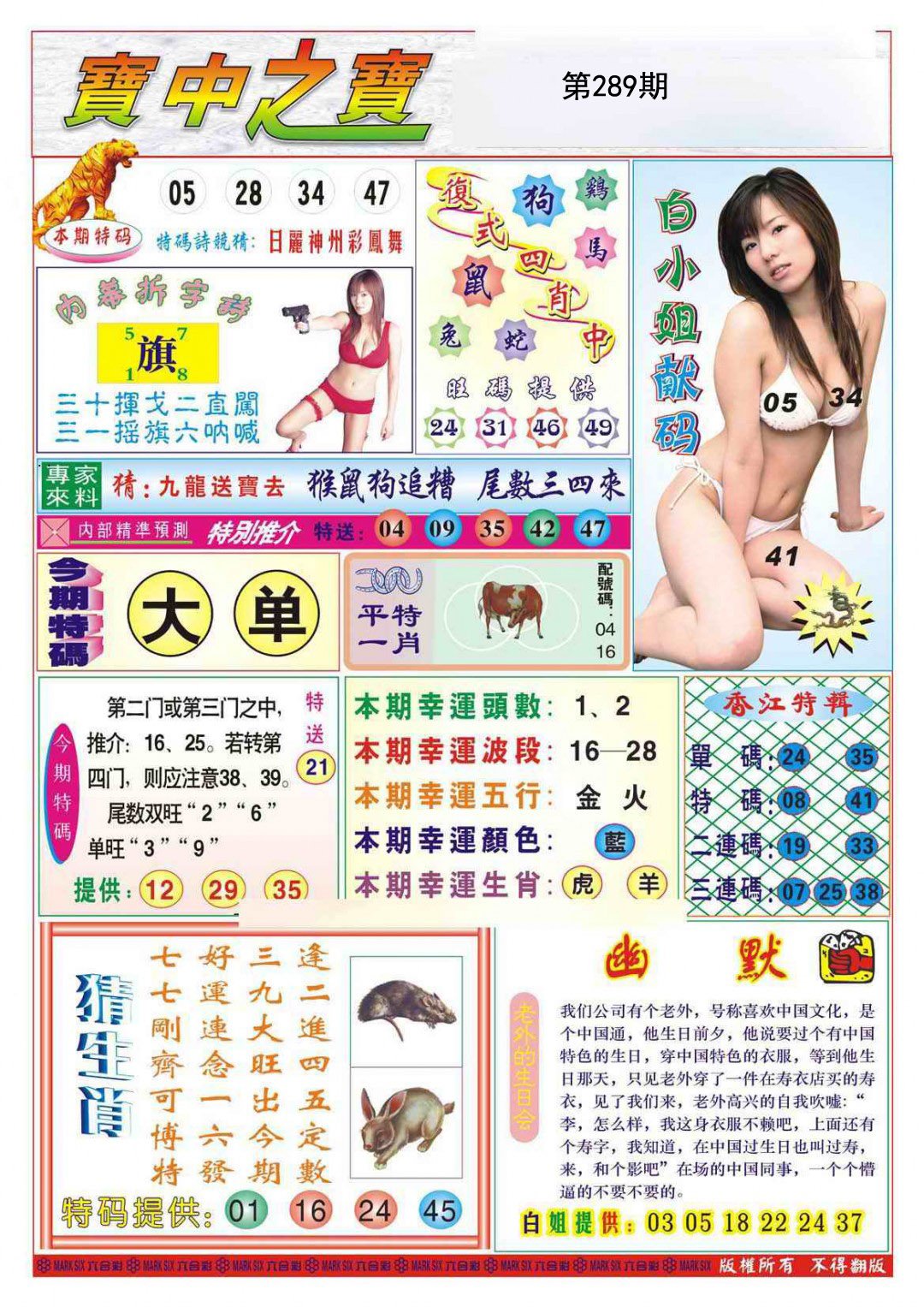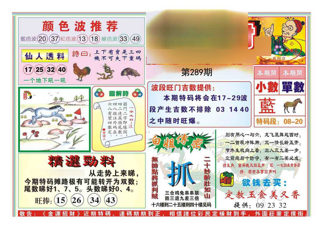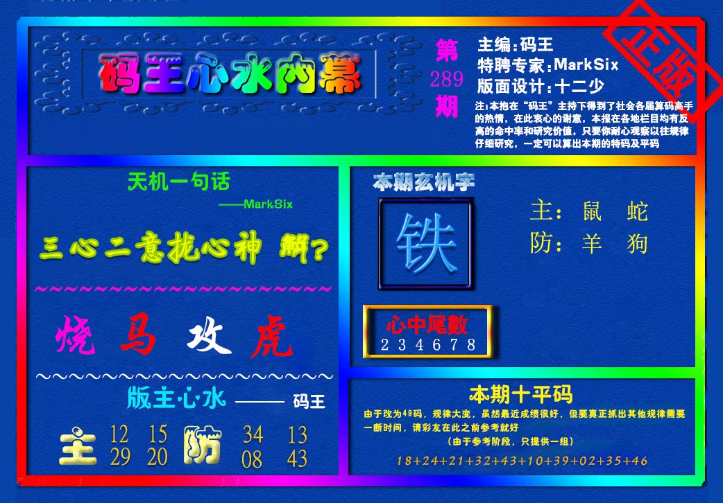 289期:必中五肖: 羊鼠猪马兔 |