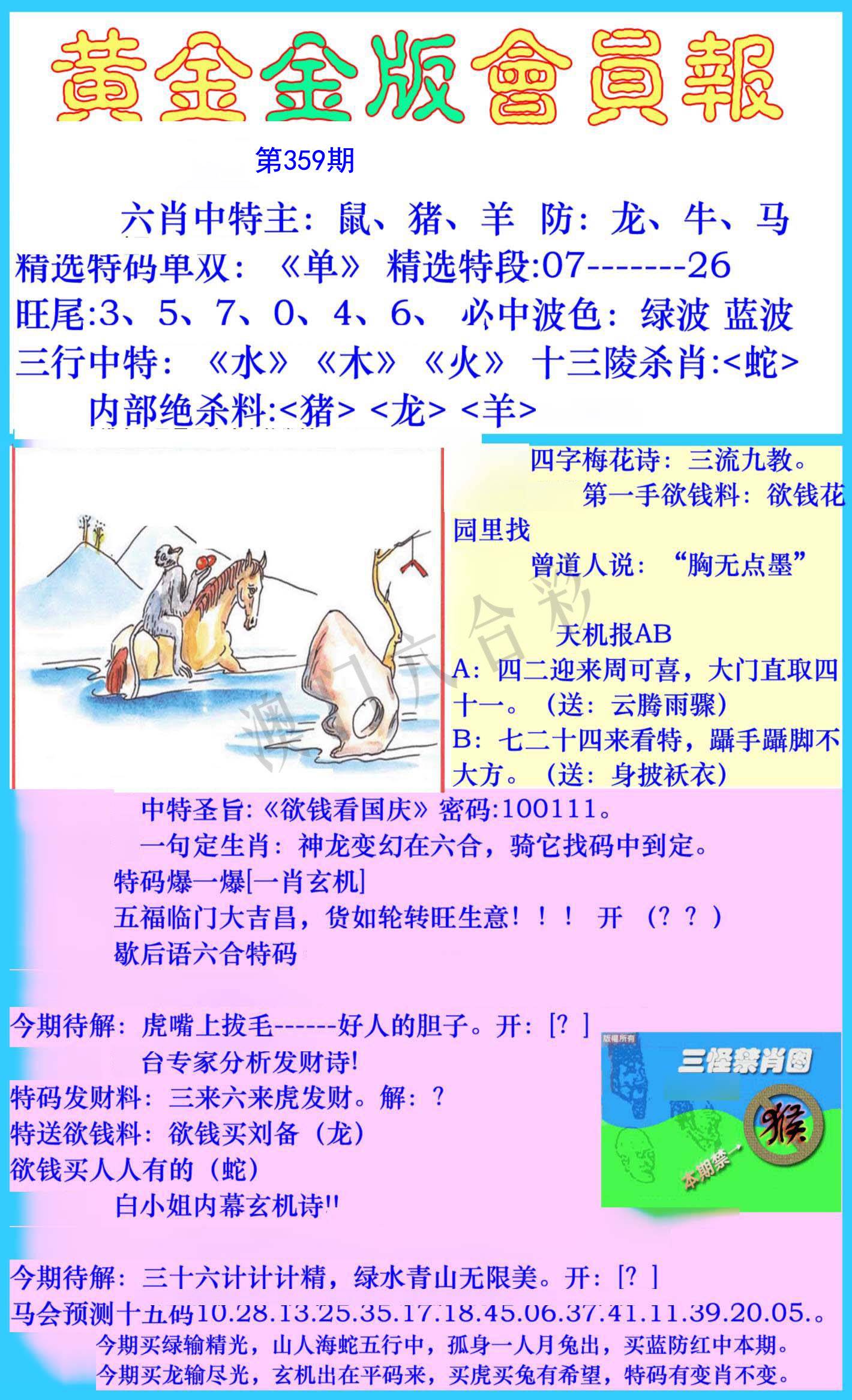 | 359期:必中五肖: 蛇猴马龙兔 |