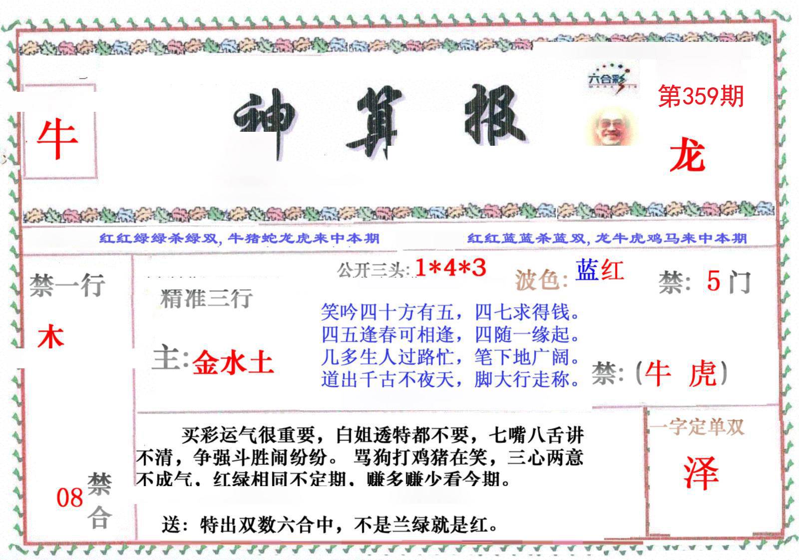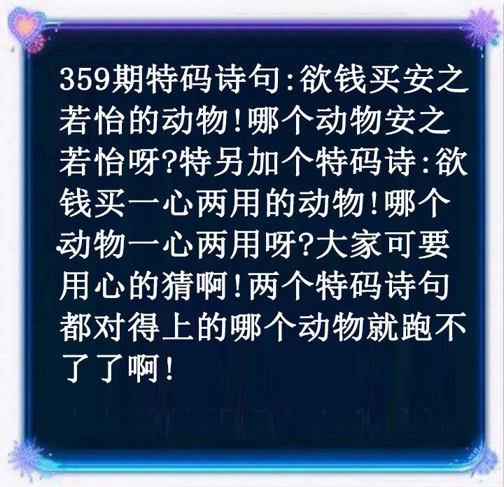 | 359期:六肖中特(牛狗猪虎鼠蛇)开?00 |