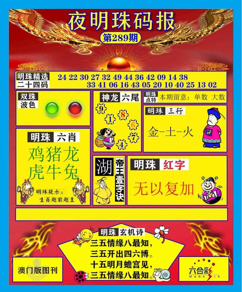 288期:必中七肖: 牛羊猪龙猴狗鼠 |