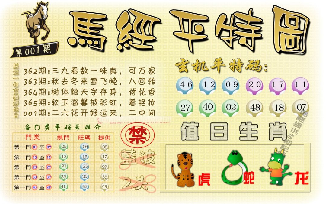 | 001期:必中㈢肖: 虎鸡蛇 |