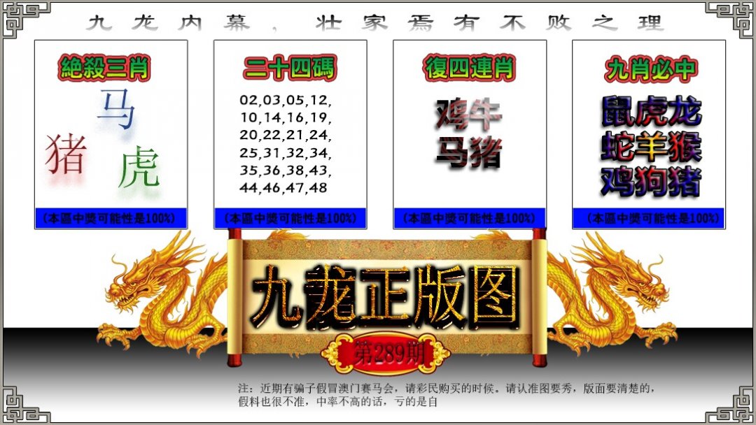 287期:必中五肖: 蛇虎鸡牛龙 |