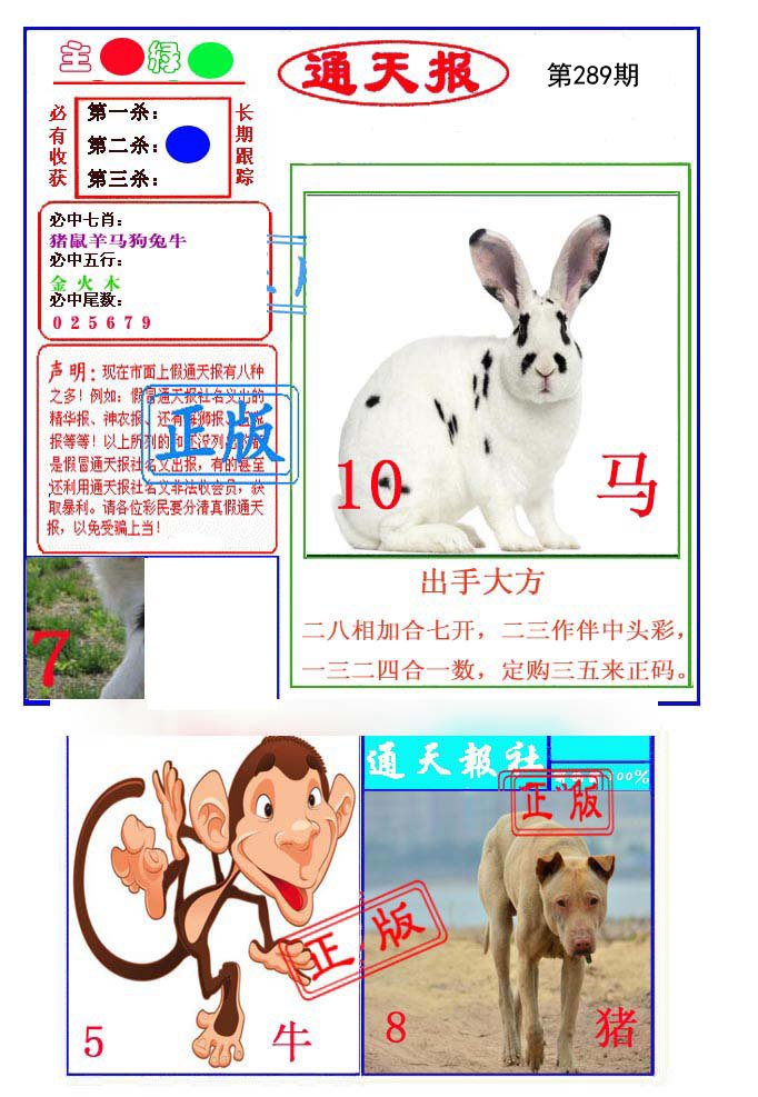 289期:必中七肖: 羊鼠猪马兔虎猴 |