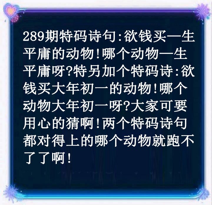 289期:六肖中特(鸡龙羊猴兔虎)开?00 |