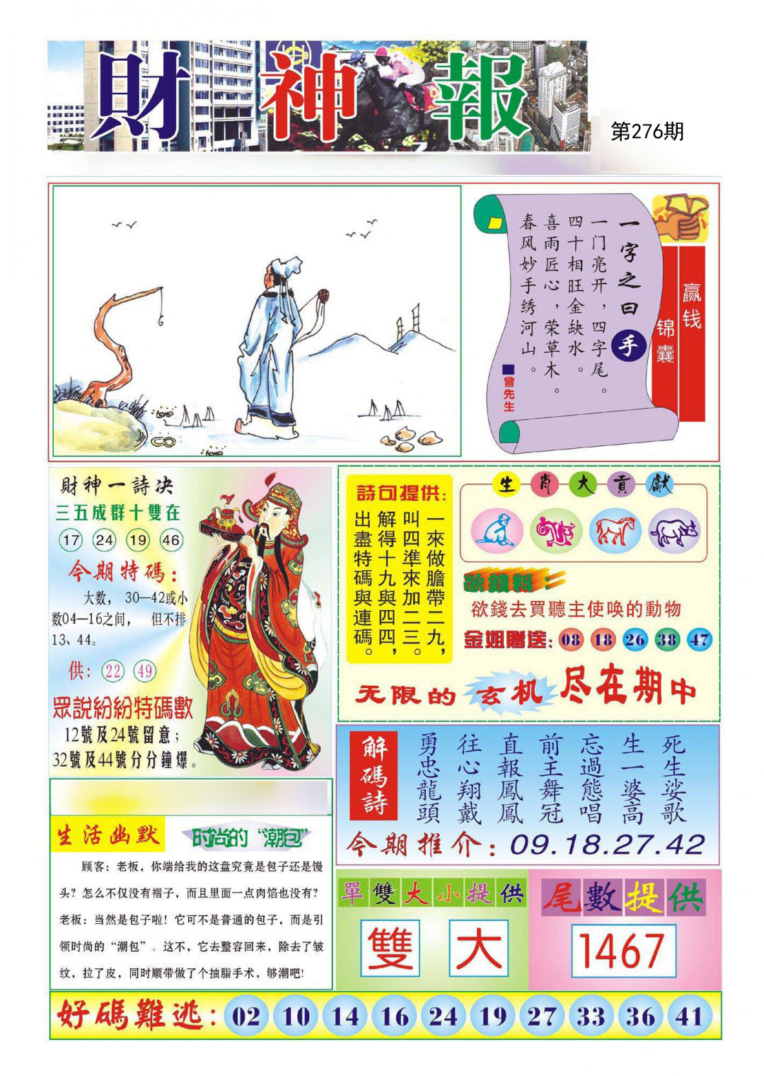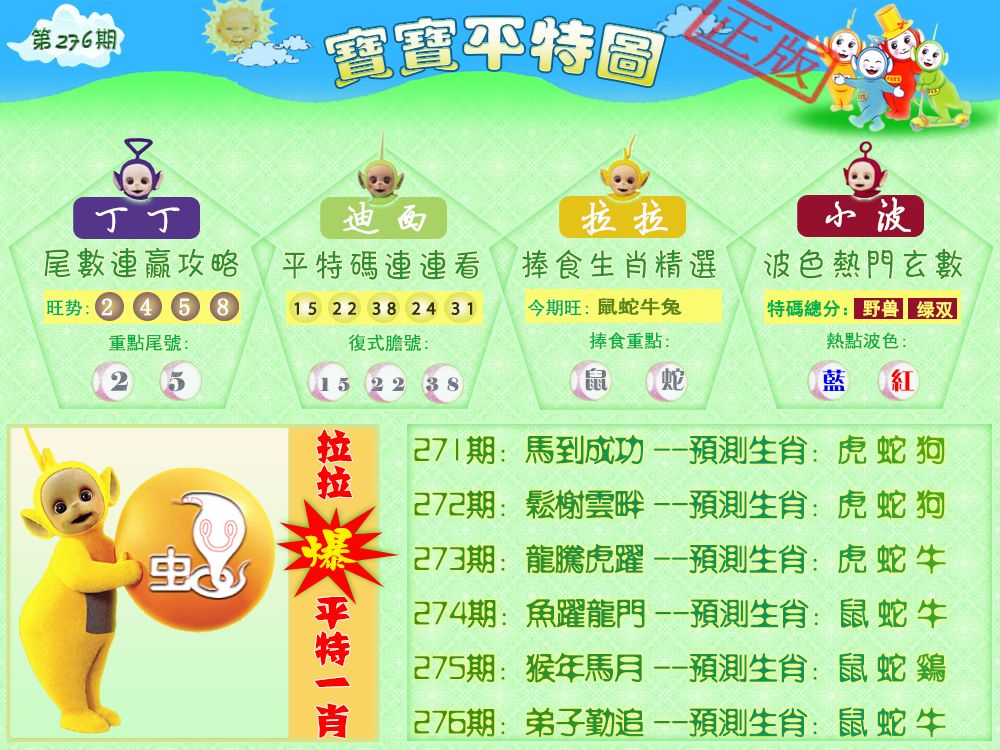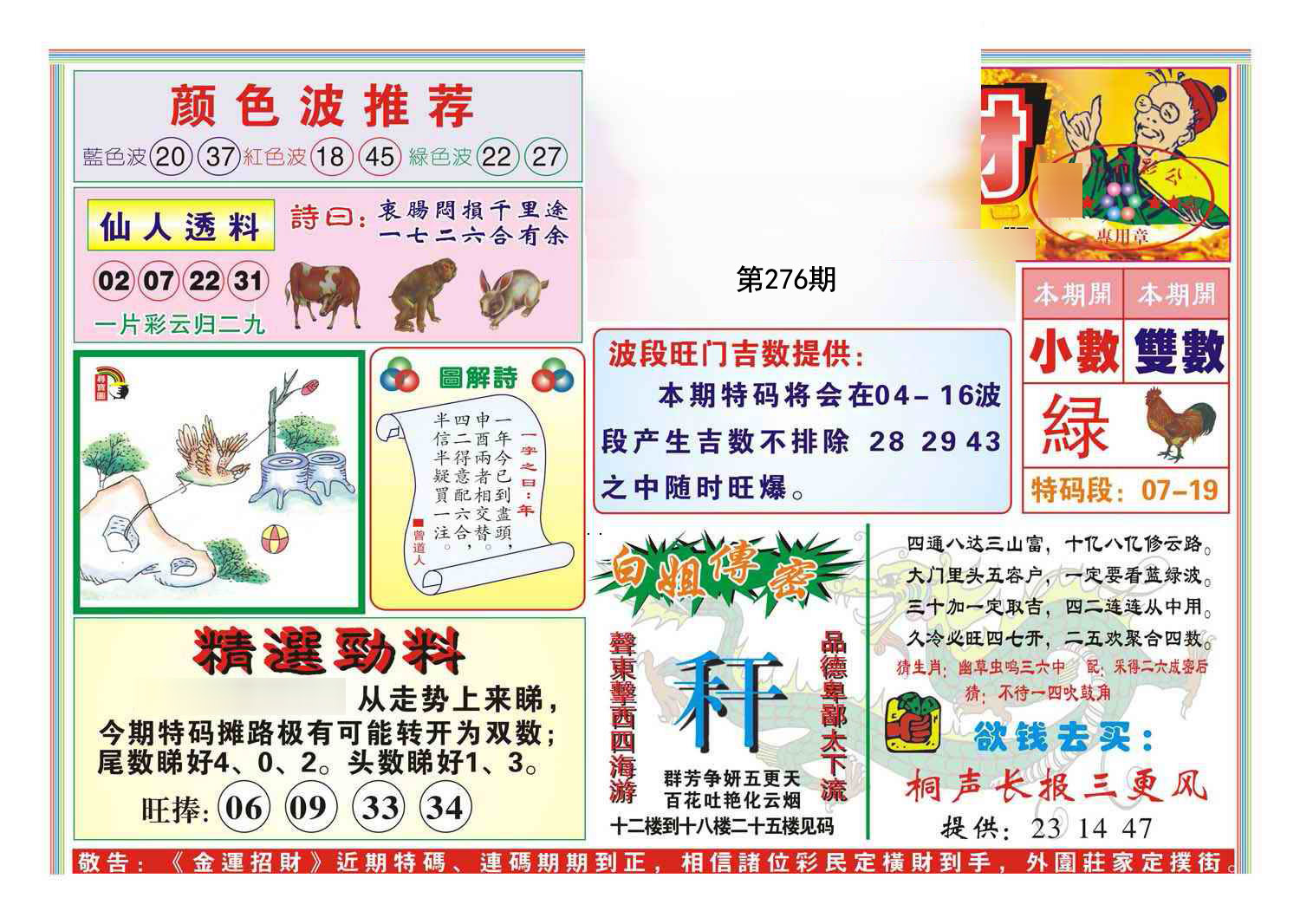 276期:必中七肖: 兔鸡蛇虎狗鼠龙 |