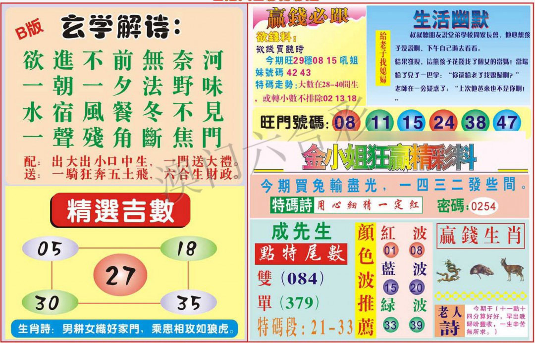 | 305期:必中五肖: 虎羊鼠马猴 |