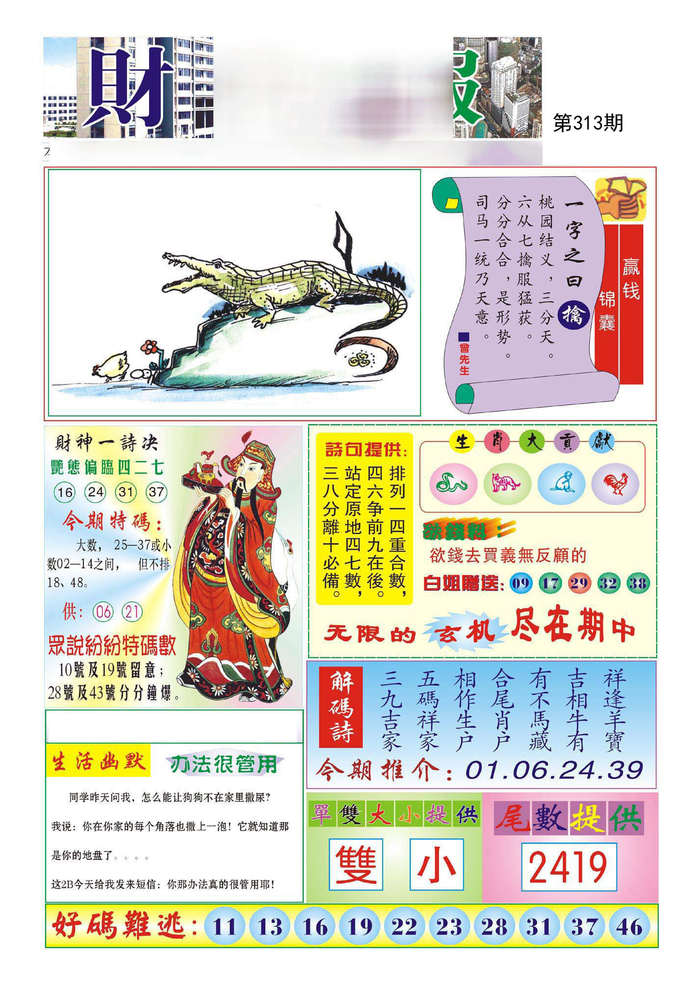 313期绝杀中特【狗肖-0头-6尾-单数】开?00 |