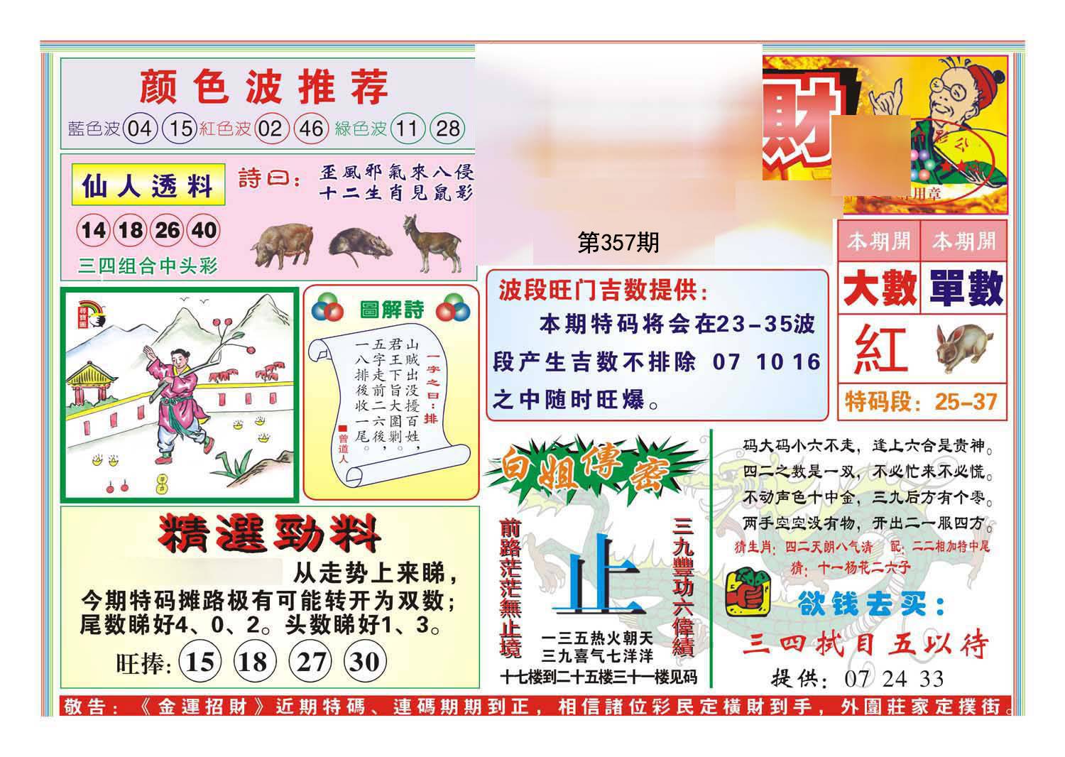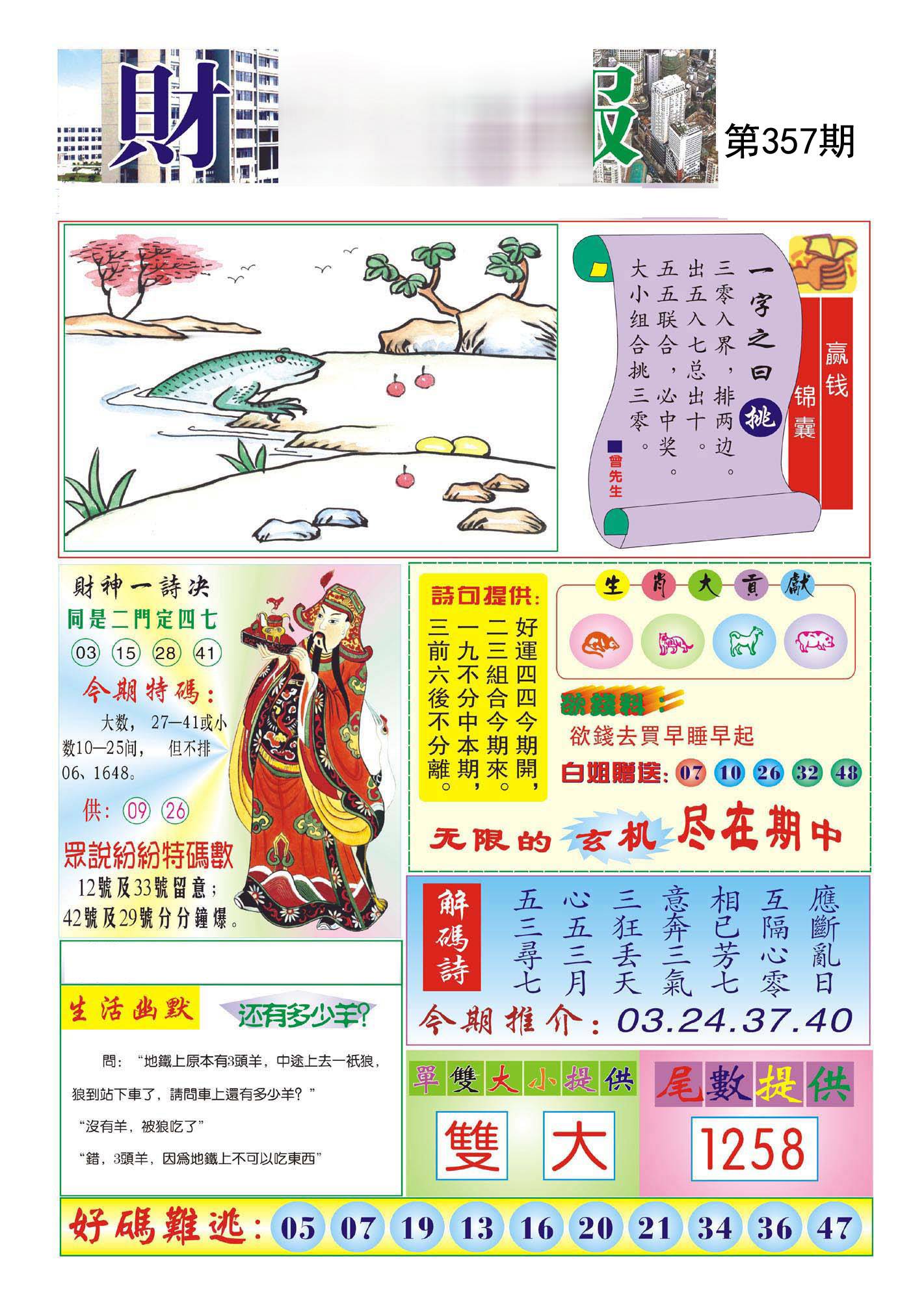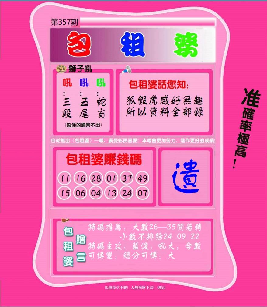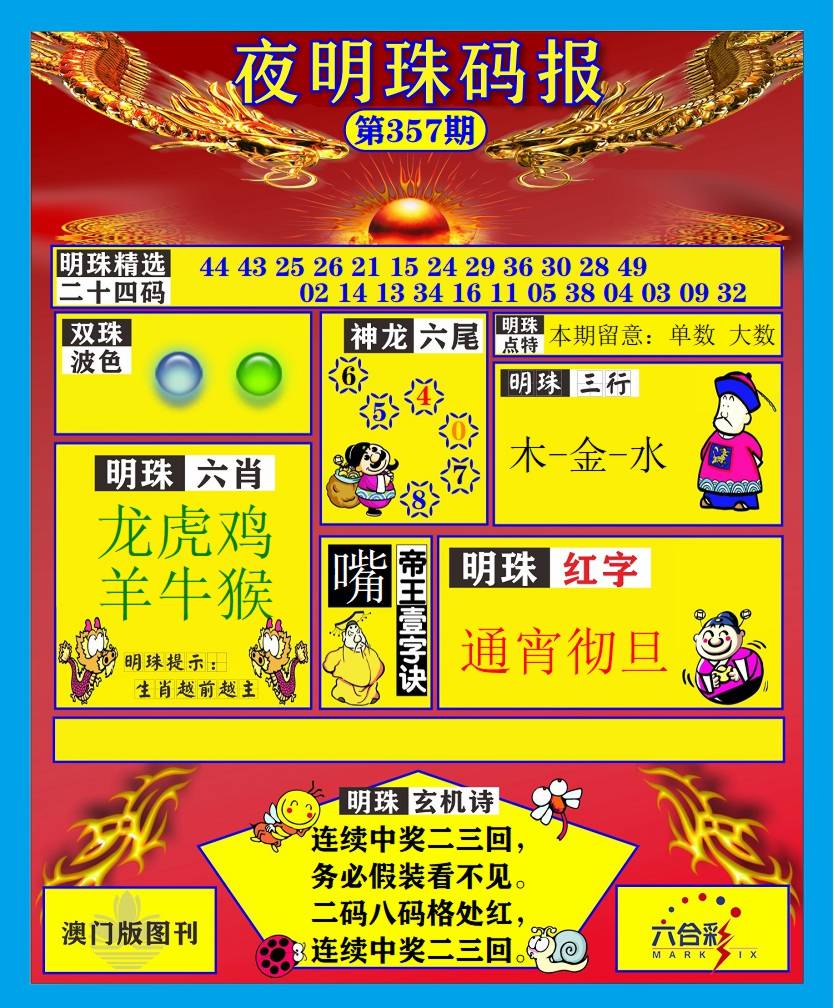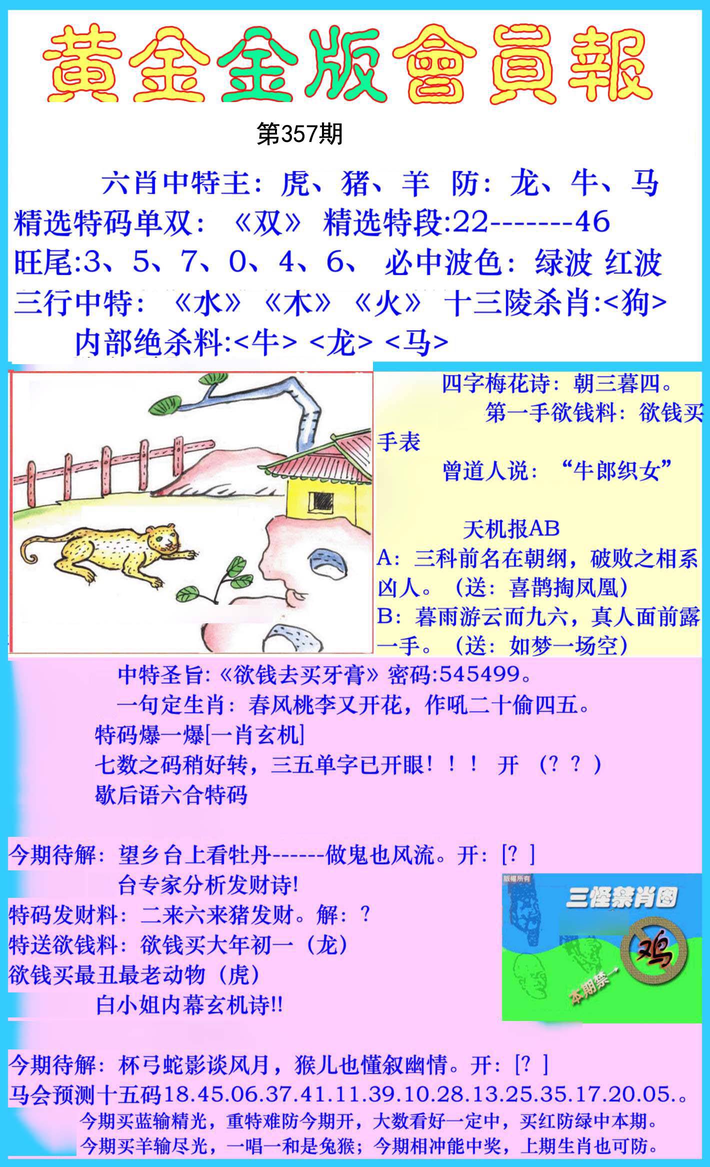| 357期:必中五肖: 狗羊鼠龙猴 |