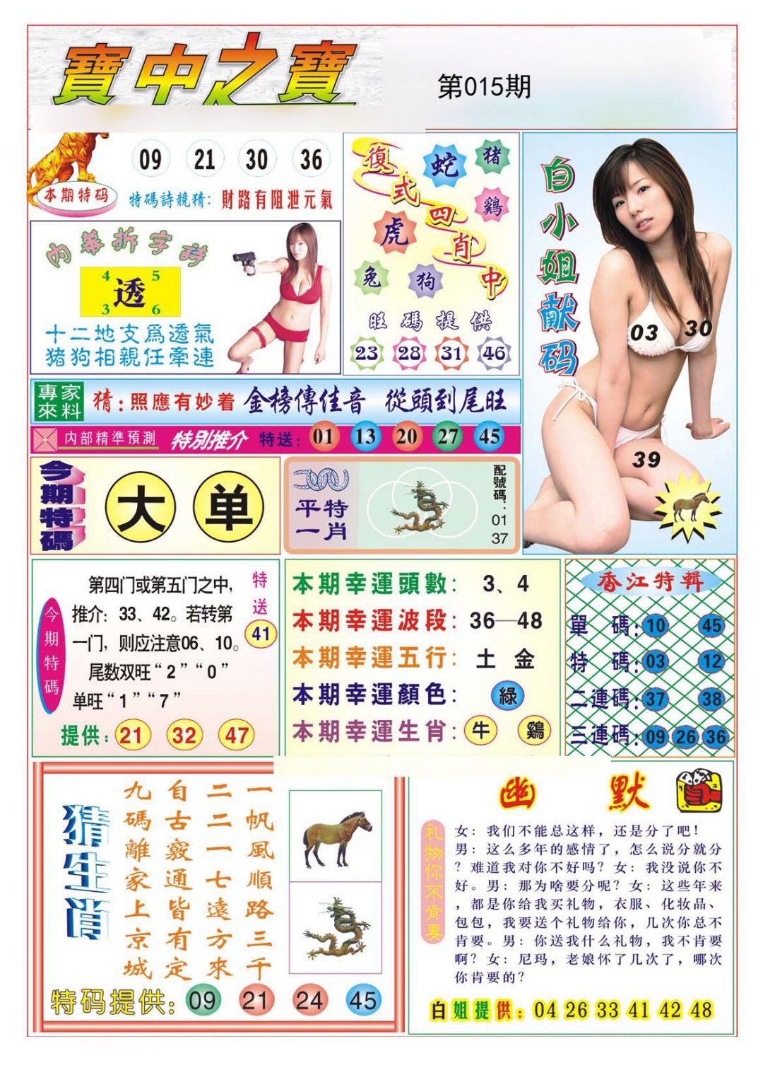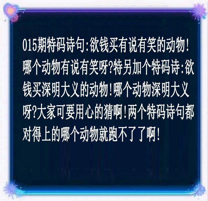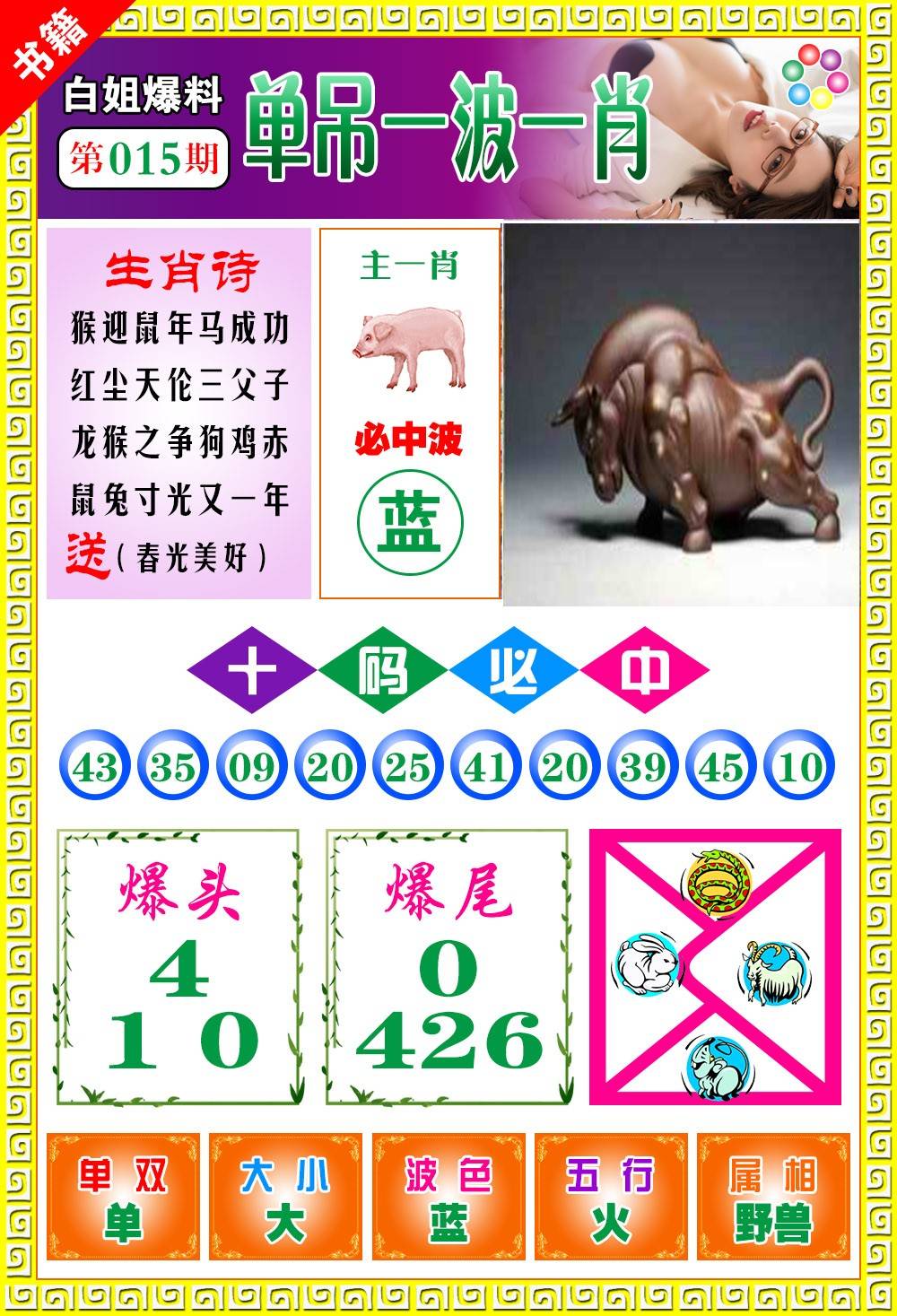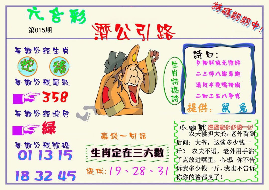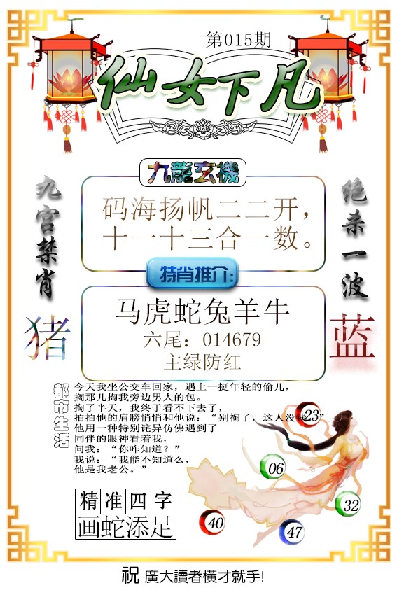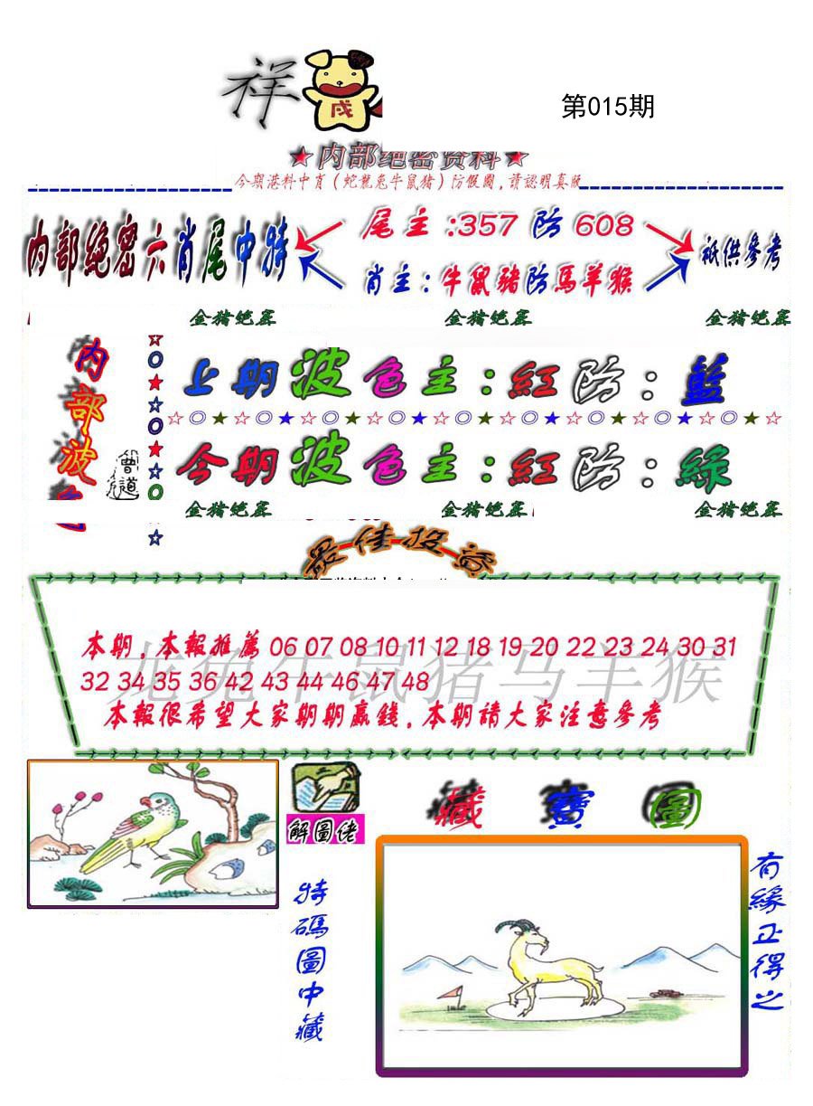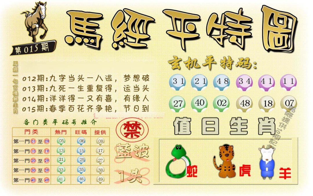 | 015期:必中七肖: 鸡马虎兔蛇狗羊 |