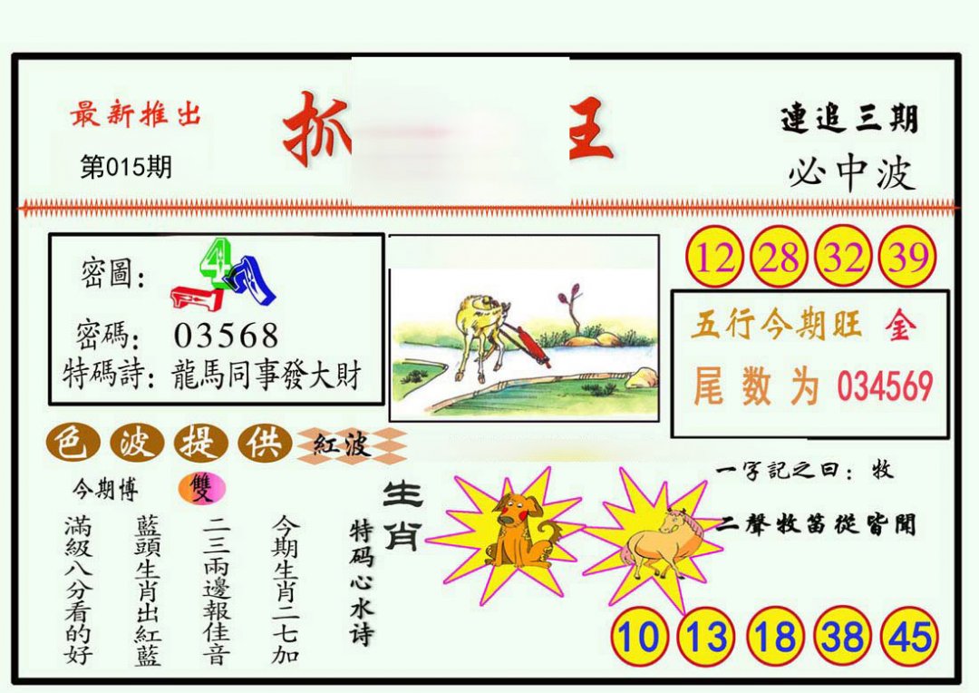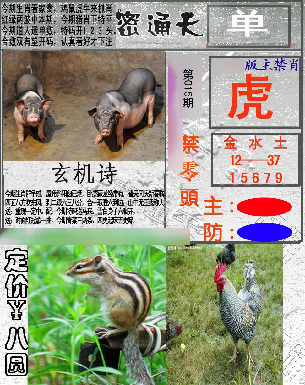| 012期:必中五肖: 虎牛狗龙猪 |