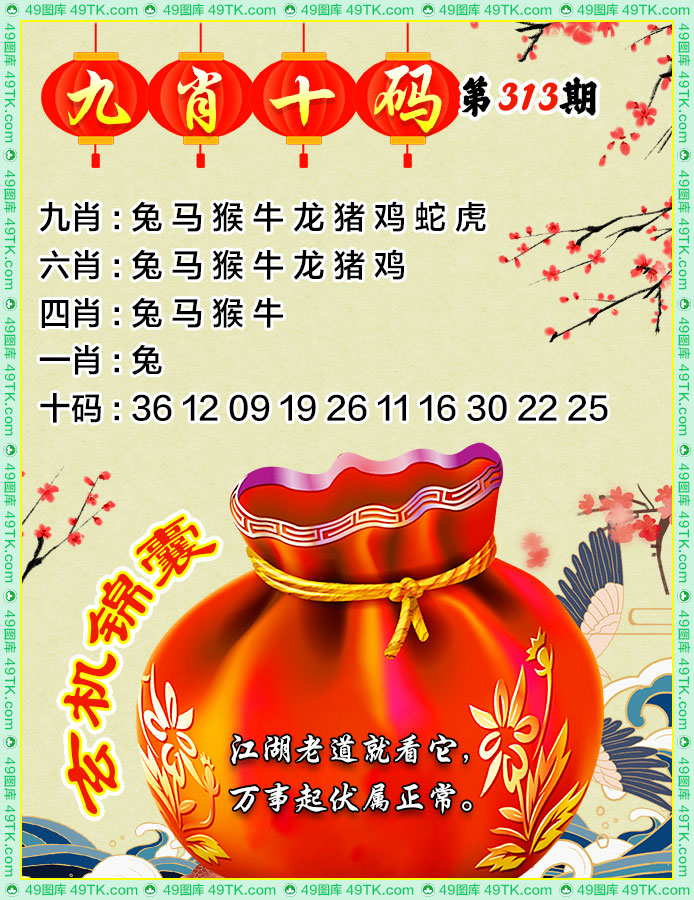 | 313期:必中七肖: 鼠龙牛羊马鸡兔 |